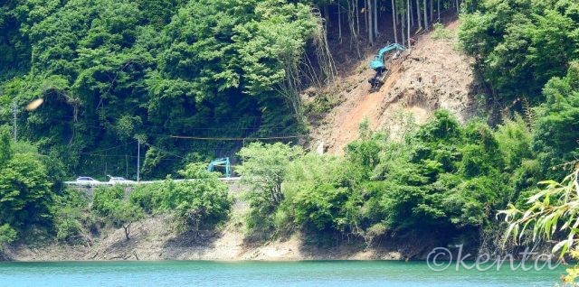 みどり湖畔で、斜面にバックホウがぶら下がってる!!! (写真はほぼ全て、ダム好きおばさん御提供) 昨日、ダム好きおばさんと熊谷建設さんに情報提供頂き、 いてもたってもいられない!と、上司と後輩君を誘って現場に観に行ってき…
