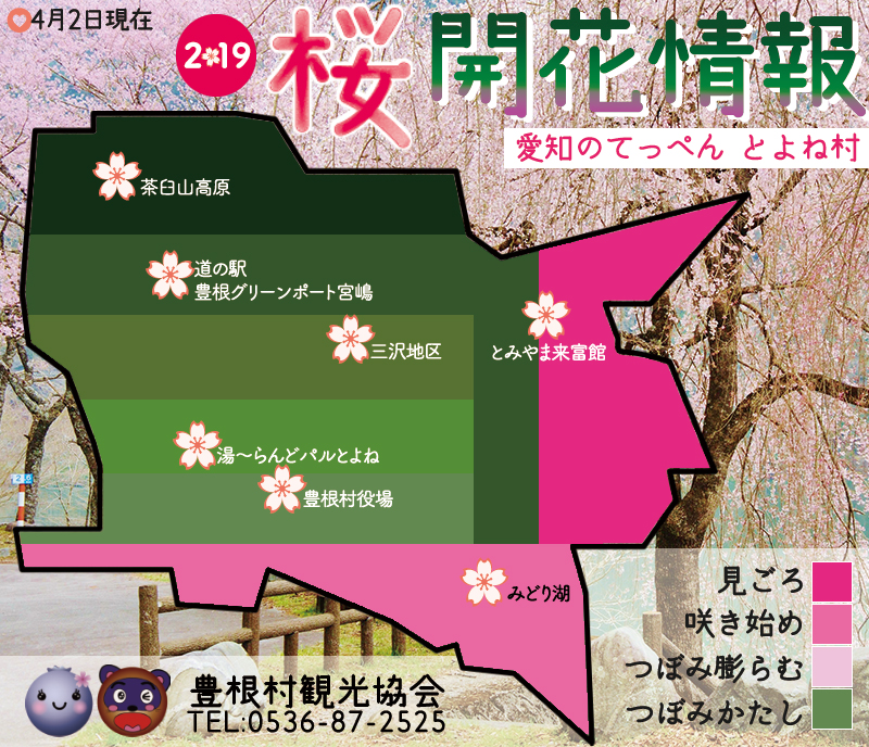 豊根村の桜、開花状況がとっても分かりやすいデフォルメマップになって登場!!