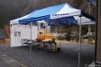 あいにくの小雨でしたが、テントを設営して机を並べて、準備を整えます。