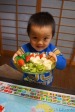 寝起きはいつも機嫌が悪いのに、絶好調の息子でした。