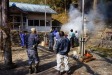 神社へ戻ると、花祭りの舞庭周辺に散らばった枝葉を一箇所に集めて、