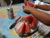 おやつは、母が畑で育てた採れたてのスイカ!!