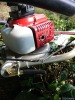 母上と二人でお茶刈り機に畝を跨がせてスターターを引っ張ります。
