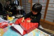 「あれ〜?おとうさん、プレゼントをちょこっとだけ開けた?」